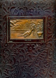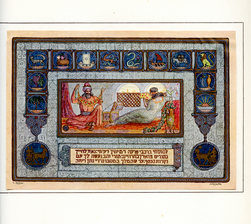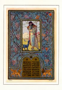 Joe’s mother purchased this book when the family lived in Germany. There are 25 beautiful color plates (signed by the author) – each protected by tissue. This is book is valued from $100-150. Aside from yellowing of the pages, it is in excellent condition inside. There is normal shelf wear on the edges. The text inside is in French; text accompanying the plates is in Hebrew