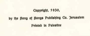 Year: 1930 / Pages: 20/ softcover / Not Marked – This book belonged to Joe’s mother. It is dated 1930; printed in Palestine.
